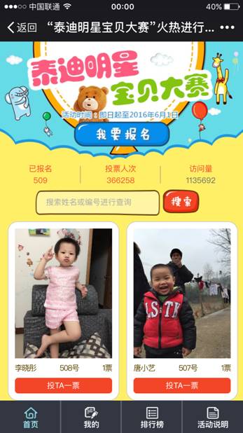 "泰迪明星宝贝大赛”为动漫电影《泰迪熊之玩具大战》同期线上宣传活动,该影片由咪咕动漫、金川文化、掌众传媒共同出品,将于6月9日全国上映。此次活动面向全国0-6岁的儿童,自5月初启动以来,受到深圳及全国各地宝妈宝爸的热切关注,先后吸引了500余名萌宝参与活动。