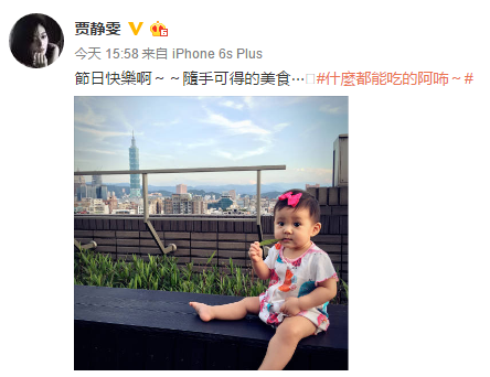 6月1日是儿童节,贾静雯在微博晒出一张小咘咘的美照,照片中,小咘咘头顶粉色蝴蝶结,睁大眼睛看着镜头,肉嘟嘟的小手里还攥着一片叶子,还把叶尖含在嘴里,实在是可爱爆了。贾静雯还写道:”节日快乐啊,随手可得的美食,什么都能吃的阿咘。”