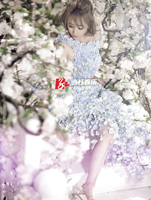 近日,网上曝光一组马丽的高清唯美写真照。与以往荧幕中搞笑、泼辣的形象不同,照片中的马丽穿着仿佛用花瓣制成的精致长裙,坐在花丛中,露出白皙的香肩和大长腿,锁骨迷人,大秀性感美肌,令众多网友大为惊叹:没想到你是这样的百变女神超级马丽!