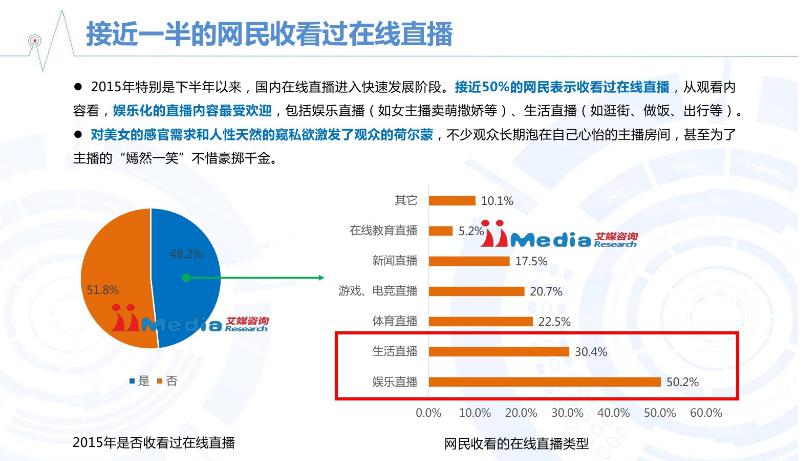 2015年特别是下半年以来,国内在线直播进入快速发展阶段。据统计接近50%的网民收看过在线直播。网民表示直播让单调的生活不再那么枯燥,但除了直播吃喝玩乐、陪聊、唱歌、搞怪,直播也能帮助我们做一些更有意义的事情,真真切切的帮助到他人。
