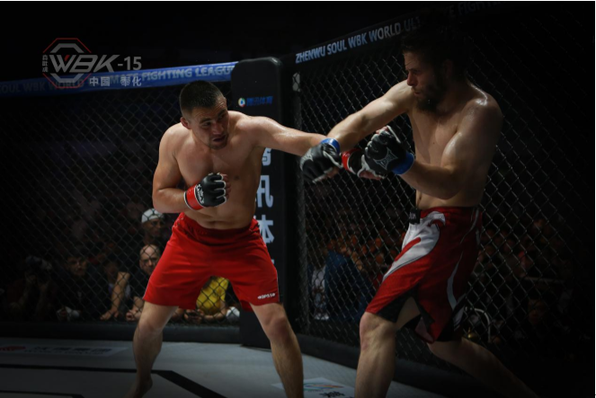 气场极其强大、信心爆棚、号称美国“孙悟空”的黑皮吉奥,是一位别有心计、格斗技术杂糅百家的猛将!他专挑高手挑衅,每一次出场都能迅速吸引眼球。当晚第一回合开场不久,黑皮吉奥就把居马别克拉入了笼边地板战,他强势压制着居马别克,用重拳一下一下猛击居马别克,现场情况非常凶险,真武魂赛场上罕有地出现了长达一分多钟的“中国队加油”的呐喊声。眼看黑皮吉奥就要以腿部绞杀终结居马别克,裁判及时宣布第一回合时间结束。接下来的两个回合双方也打得非常精彩,现场观众大呼值回票价。