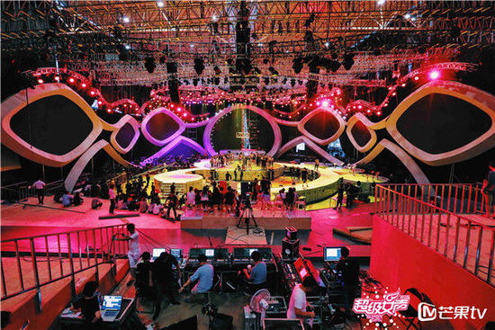 为了呈现一台极致华丽的总决赛,《2016超级女声》在湖南广电国际会展中心搭建了1500平米的大型演播厅。而整个演播厅的三分之二,全部用来搭建这个“360度环绕式”的舞台。唐焱介绍“(圆形与弧形的主舞台设计)我就是想把舞台打乱一点,不像以前的(舞台设计)那样规规矩矩的,让粉丝可以填在里面不同的区域,(舞台)各方面的层次,各个角度怎么拍怎么有,360度无死角。”