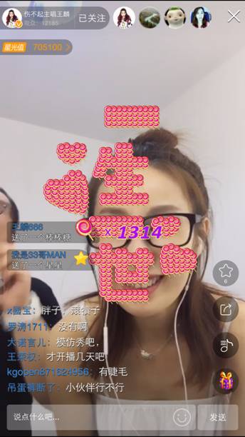 王麟这次的直播很特别,她不是自己单独在直播,而是和她的助手“涂涂”一起。她说这样多向聊天气氛会更好,粉丝们互动会更热烈。她还说,其实自己平常除了唱歌,很少会跟陌生人讨论私密话题,但是她觉得繁星直播这个平台很好,可以跟不同的人聊很多话题,她希望繁星直播可以作为自己一个私密的平台,拉近与粉丝们的距离。