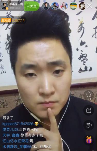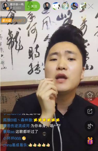 一鸣原创作品《紫色烟花》在繁星直播平台翻唱特别多,这是他在繁星开歌友会的直接原因。在展示个人前两张专辑之余,他表示第三张专辑将多加几首类似风格的歌,然后唱起第二张专辑里面的《爱一个人为什么那么难》,歌声时而婉转时而直抒胸臆,浓浓的真情洋溢在旋律之间,网友赞“声音像郑源”!