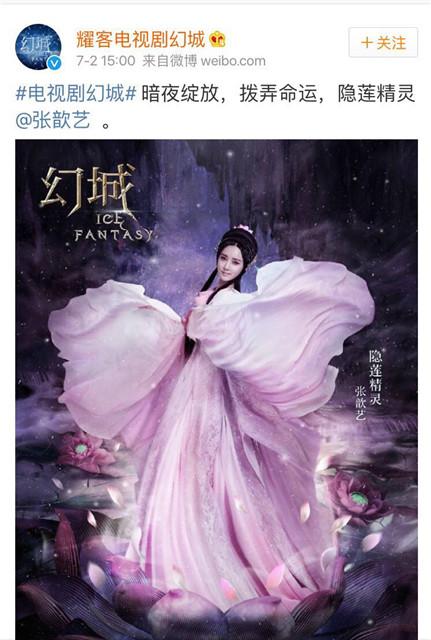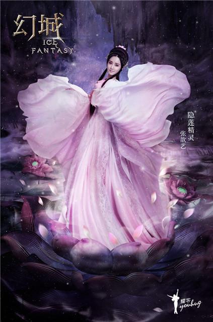 近日,由郭敬明的小说改编的电视剧《幻城》再曝光一组人物造型海报,由张歆艺饰演的隐莲精灵惊艳亮相其中。海报中一身粉裙飞舞的隐莲精灵置身于盛开的莲花中央,转身回眸仙气十足。据悉,在“暗夜绽放”、可“拨弄命运”的隐莲精灵虽然着墨不多,却是至关重要的一个角色,她的出现将会给主角们的命运带来未知的变数。