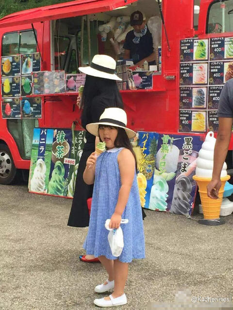 其中爸爸王岳伦还排队为李湘王诗龄买冰激凌,瞧照片中一对母女吃着甜筒的模样,实在是温馨满满。