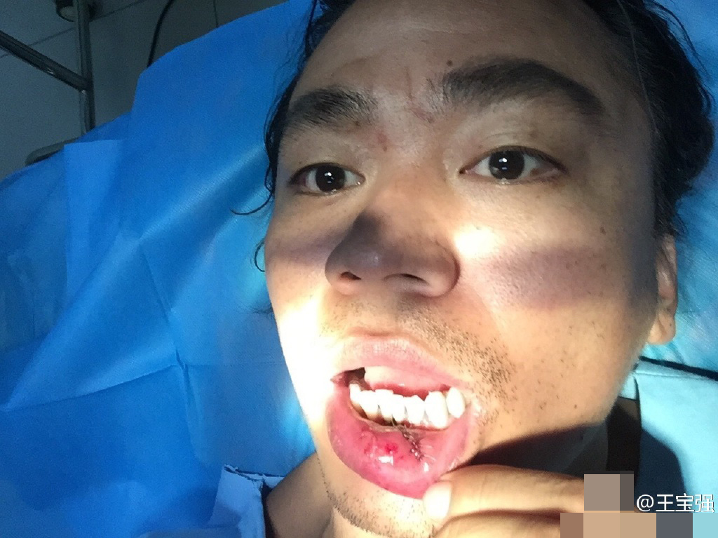 11日,王宝强在微博中晒出一张受伤后在医院缝针的照片,并配文:“宝宝缝了十针,但宝宝不哭”。