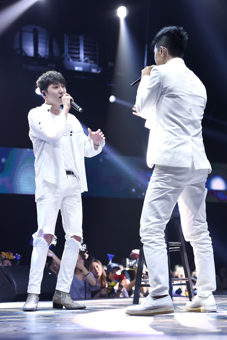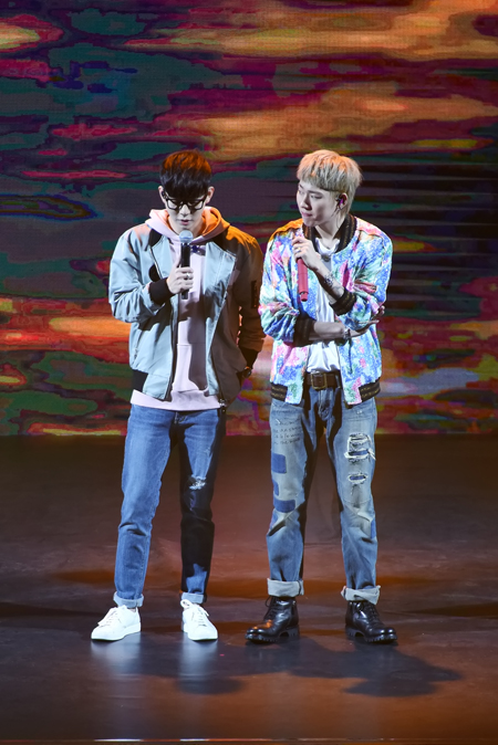 有着“清泉音”的胡夏则是“可爱撞可爱”,和萌萌哒的zico一组。不得不说,两人之间的曲风差异最大。为了能拿出最好的作品,两人互相照应,有着丰富编曲创作经验的zico贴心的选择了一首慢歌《我是你,你是我》。而为了配合zico,胡夏也改变了自己安静的唱歌方式,与其一起在舞台上动了起来。另外,两人合作表演时是帅气的偶像,但私下里会面时却纷纷“小恶魔”附体,不仅筹划如何在中国玩,还要一起去见中国漂亮的女明星,瞬间调皮鬼上线。