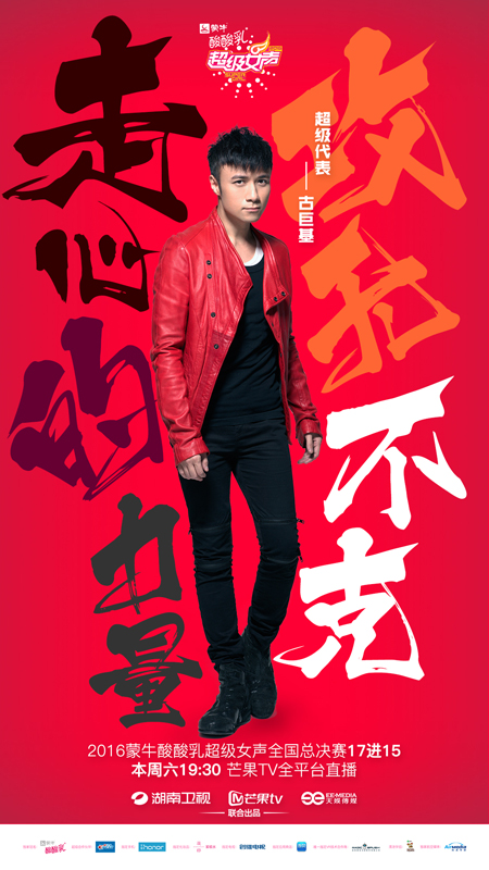 曾在《我是歌手》这种歌王竞技节目中大放异彩的古巨基,两首红遍大江南北的串烧《情歌王》、《劲歌金曲》让无数小伙伴唱到缺氧。本次加盟超级女声总决赛第三场,与王心凌、黄致列以及另一位神秘男神组成“超级代表”。与其他三位不同的是,古巨基既做过评委、又当过选手,还能把带着素人登上冠军宝座,自身又是歌王级人物。相信他的到来,能够从选手的角度来指导超女在音乐比赛中如何比拼、如何从众人中脱颖而出;也能在专业音乐人的角度对选手的唱功、能力给予指导,并传授歌王的成长经验。