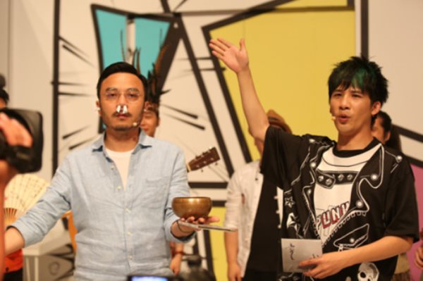 在直播平台PK时,两队纷纷使出了“糖衣炮弹”来刺激观众投票,几位领队更是节操掉了一地,汪涵将自己折扇上的扇坠晒出来诱惑网友;而大张伟这边,面对着网友频频喊“脱”,一贯“保守”的他居然也为了投票,现场“晒肉”,不仅自己晒,还要求嘉宾跟着一起“露肉”。如此“掉节操”的行为,引来了涵哥一队的集体“鄙视”。