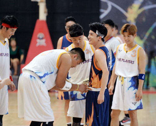 薛之谦最调皮的是,星联家族的小鲜肉他一个也没放过,还在打着比赛呢,就挨个儿撩了一遍。北影才子王燕阳一上场就跟他握手,说特别喜欢薛之谦。薛之谦特正经地抓住他的手:“喜欢不要太多,一点就够了。”王燕阳星星眼在闪烁。呆萌少年李汶翰也被薛之谦圈得死死的,不仅在场上打比赛的时候不停地互动,还在薛之谦被罚下场的时候难过地站在他身旁,给他拥抱。腼腆BOY冯瀚圃因“夺目的身高”和“炫酷的球技”更是成功地引起了这位“段子手”师爷的注意。在薛之谦被罚下场时,心情不酷的他霸道大喊:“冯瀚圃上来陪我!”,星联家族的鲜肉就这么几只,看来都要被这个“大魔王”收入麾下了。