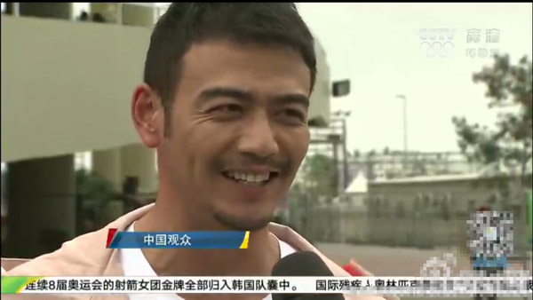 近日里约奥运会正在举行,《欢乐颂》里的“小包总”杨烁助阵中国跳水比赛队比赛现场,被媒体捕捉,从而登上了体育新闻的画面。记者询问他为什么来看跳水比赛,而电视屏幕上的字幕写的“中国观众”。