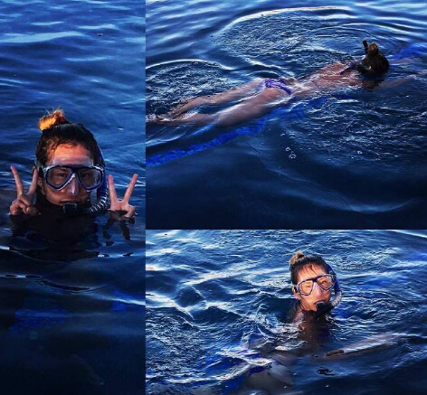 照片上的李玟身穿性感泳装,虽然头戴潜水面具的她看不清脸,但是光是从水面若隐若现的身材曲线就可以看出,李玟仍然性感十足。