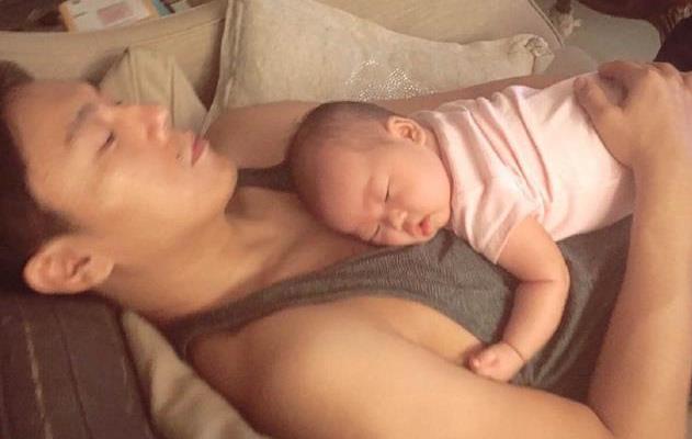 照片中,小米粒胖乎乎的,趴在爸爸肚子上睡得香甜,而秦昊也躺在沙发上,可能是由于带娃太累,也睡着了,但双手抱着女儿,父爱满满,画面十分温馨有爱。