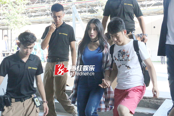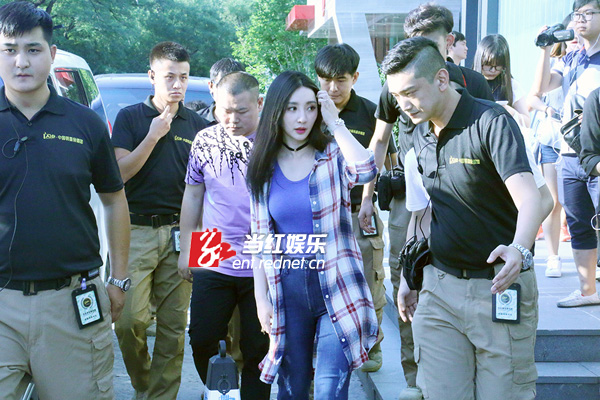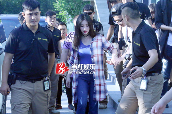 柳岩获一众黑衣帅哥保镖悉心护送