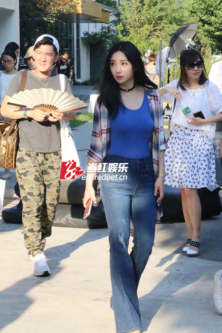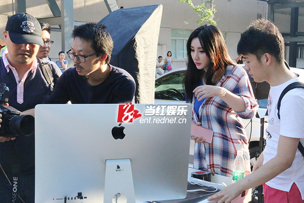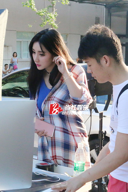 柳岩在拍摄现场