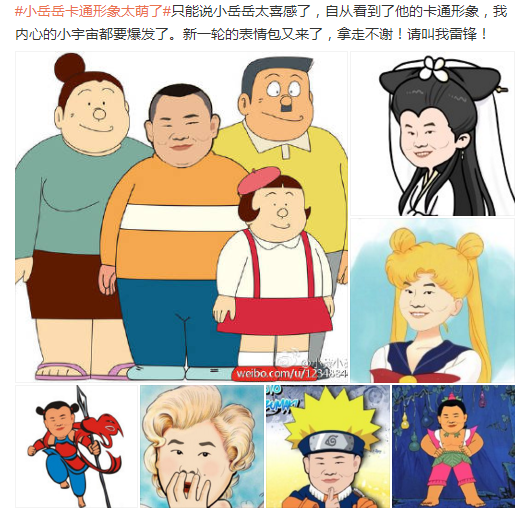 9月21日,一组由微博网友“小葵小葵花”PS的卡通版小岳岳形象图片迅速爆红网络,引发了网友们的疯狂热转和点赞。