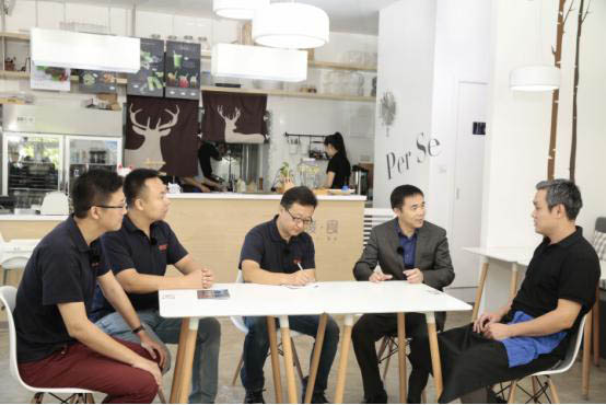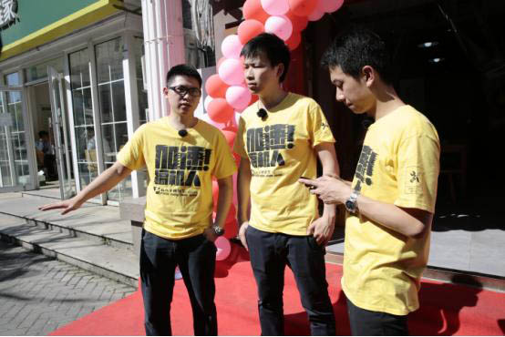 投资人周少雄和“卡拉丁”团队在跟店主商量策略