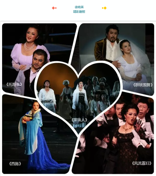 毕业至今, 她一直努力,不断成长着,逐渐活跃于歌剧舞台。如今,更成为上海歌剧院的当家花旦。然而,备受瞩目与赞赏的她,却迟迟未举办自己的独唱音乐会。“刚毕业的时候是有机会的,但当时的压力实在是太大,怕自己火候还不够,再加上排演任务也比较多,就一直没有办。”徐晓英回忆起自己从最初的稚嫩到进入上海歌剧院一路的成长历程,感触颇多。现在的她,已与许多国内外的著名歌唱家同台合作,俨然已是歌剧舞台上一颗美丽的明珠,深受观众喜爱。她笑着说:“也应该办一场音乐会来感谢一直陪伴关心我的观众们了。”