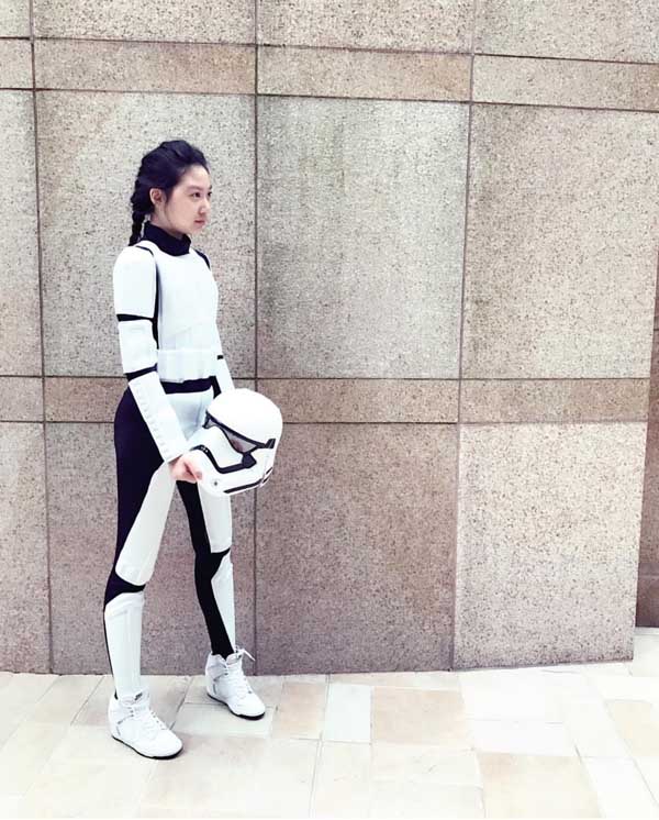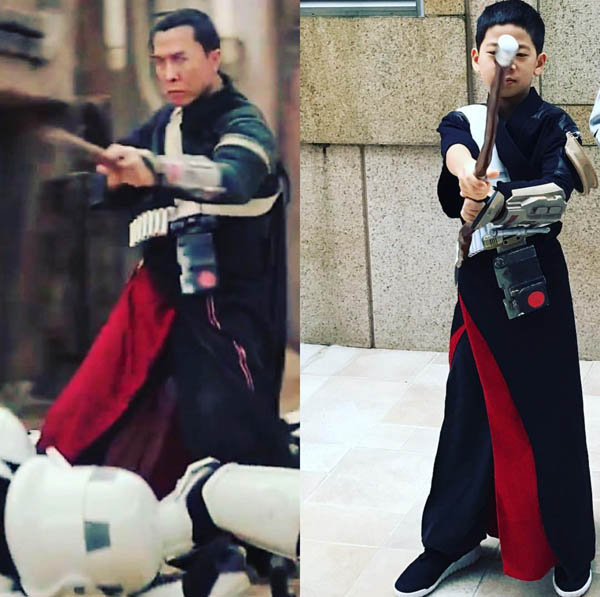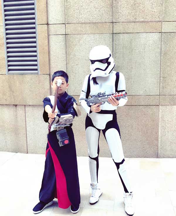 此次,儿子James扮演的是甄子丹在电影中的“盲侠”造型,手持木棍,有着甄子丹一脸正气、仁者无敌的气势。而女儿Jasmine则扮演星战中最广为人知的“主角”白兵,扮相惟妙惟肖,英姿飒爽,被甄子丹夸赞是“最靓最有型的白兵”。