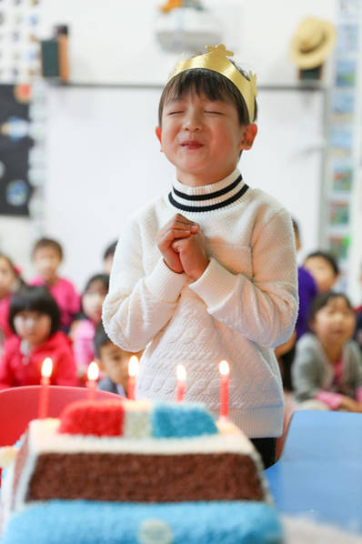 小亮仔过生日,闭眼许愿,十分可爱。