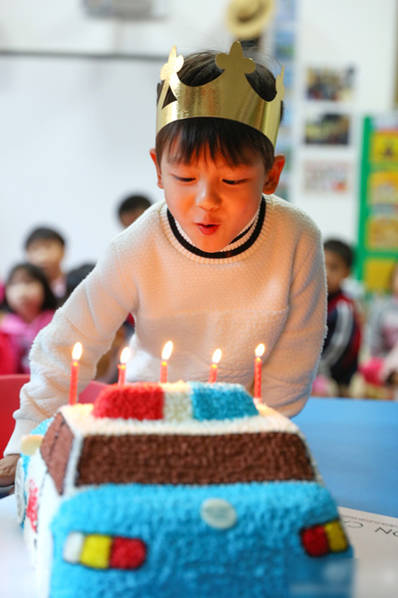 小亮仔吹蜡烛。