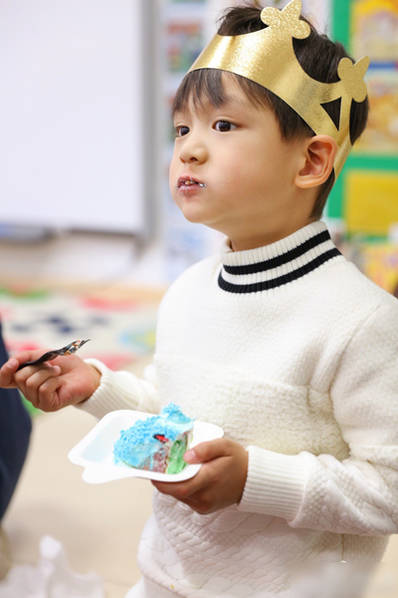 小亮仔吃生日蛋糕。