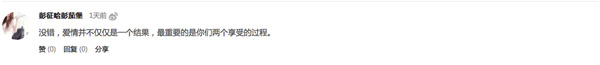 网友彭征哈彭茄堡说:没错,爱情并不仅仅是一个结果,最终要的是你们两个享受的过程。
