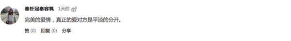 而网友秦针冠秦容筑则说:完美的爱情,真正的爱对方是平淡的分开。