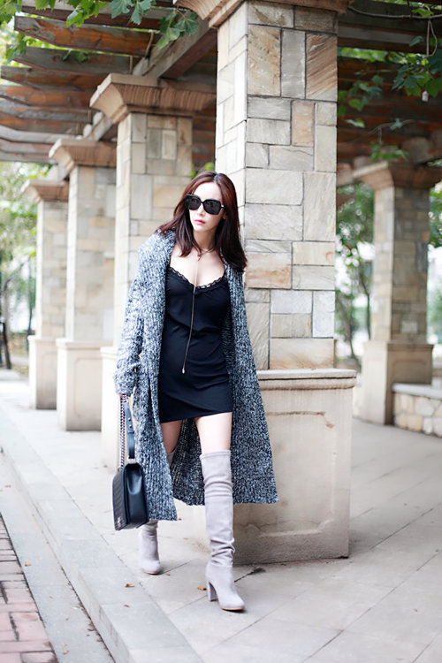 日前,时尚女星叶一云曝光了一组时尚随拍,叶一云身穿黑色修身打底衣,搭配舒适的长款毛衣,一双高筒靴展现逆天大长腿。