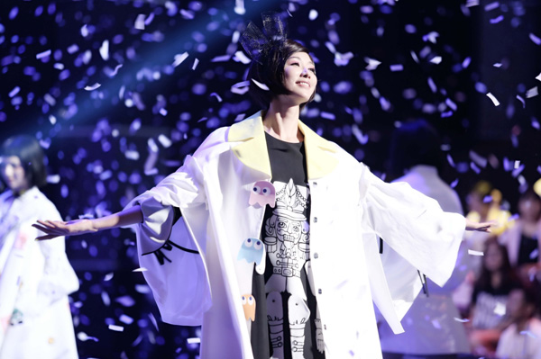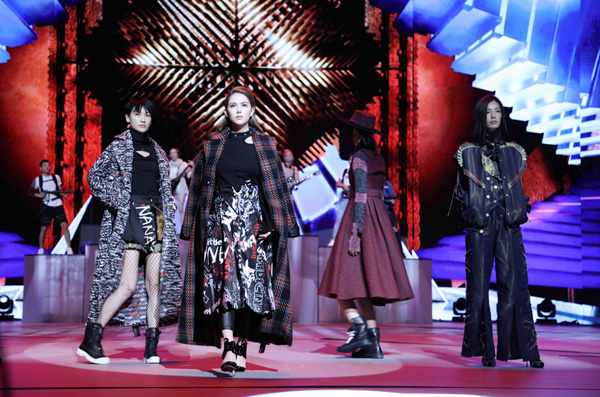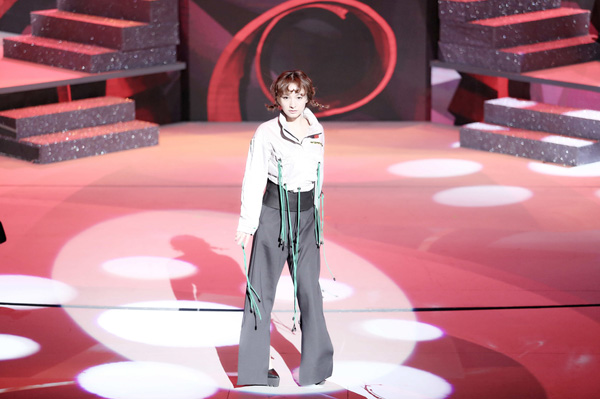 身穿太空服从天而降,将动漫的格斗特效化身为彩带造型,搭配设计感极为突出的亮皮包包,Ground Zero对二次元的超前卫设计令主持人林海都对舞台上的吴昕直呼“太霸气”!