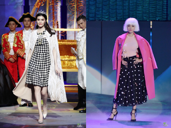 何穗和王丽坤则为观众带来了西方与东方的唯美碰撞。灰姑娘何穗由古典传统走向了现代青春,演绎出时尚公主的青春气息。而王丽坤更是将《大鱼海棠》的沉醉之美刻画得淋漓尽致:头戴银发,手持芭比,没想到二次元少女竟还能如此款款大方。