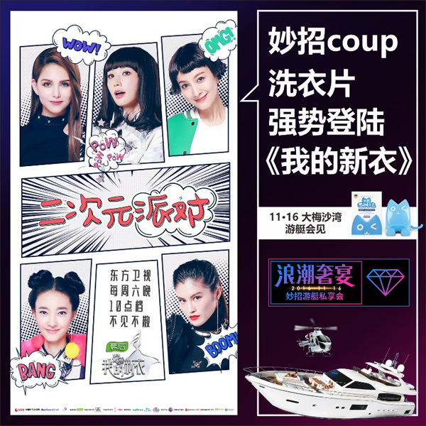 不仅在综艺节目上大放异彩,妙招线下活动更是惊喜连连。“妙招游艇私享会”于11月16日在大梅沙湾盛大启航,6艘游艇、直升机,还有红酒和美女。外貌与智慧、奢华与内涵兼具的妙招洗衣片,期待迸发出更多的潮奢魅力!