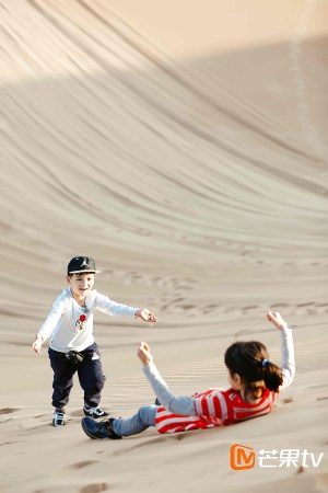 芒果TV《爸爸去哪儿4》本周继续西北大漠行,小亮仔旅行中“兼职”干起了摄像,认真摆弄机器的架势媲美专业摄像师。