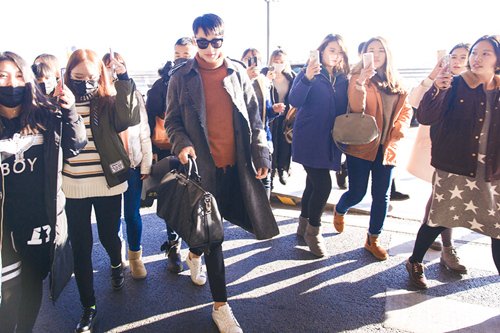 许魏洲现身机场人气爆棚 心情愉悦笑对粉丝