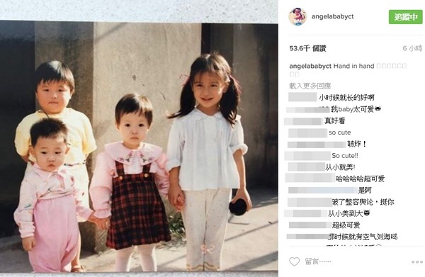 Angelababy于26日一早在社交网站上发文,分享一张童年时期的旧照,“Hand in hand。(手拉手)”画面中,只见她站在照片最右边,绑着超萌双马尾,以及走在潮流尖端的空气刘海,牵着儿时伙伴们,并跟着大家一起露出开心笑容,模样十分天真可爱。