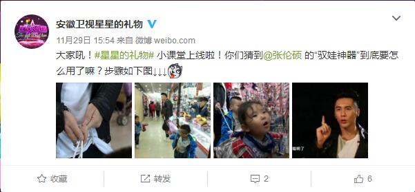 一直被大家称为“优质型男”的张伦硕最近真可谓是移动的话题点,前不久刚刚与“魅力女神”钟丽缇完婚,而婚后张伦硕对老婆的宠溺程度,堪称“完美标杆”。在本周五晚安徽卫视《星星的礼物》节目中为了保护两位萌娃的安全,张伦硕脑洞大开自创“逛街看娃神器”,随即用购买好的绳子将两个萌娃栓上,这样的逛街方式的确很安全,不会因为孩子淘气走失而惹来麻烦,但这种做法同时也引来不少路人的频频侧目与关注。在昨日安徽卫视《星星的礼物》官方微博放的一组图片中还有萌娃大哭的照片也被网友注意到。据了解,这是张伦硕在节目录制中时不时捏孩子的脸想表示爱意,但没想到此举并未示好反而惹哭萌娃,让两位孩子更加思念亲人。有网友表示张伦硕的做法并不是很恰当,因为小孩子也有尊严。也有不少网友表达了不同的观点认为张伦硕这样做既保证了孩子不会丢失,又让两位萌娃不会随意乱跑而有其他的危险。还有网友对张伦硕的做法称之为:“看娃妖术”。