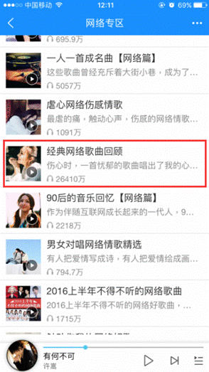《老人与海》、《贝多芬的悲伤》、《该死的温柔》...这些经典曲目大部分被喜爱网络音乐的酷狗用户收录在了自己的歌单里。而由系统精选出的优质歌单,则会被推荐在“歌单精选”一栏中。由下图中可以看出,推荐的歌单收听量大多较高,甚至已有部分过亿,钟爱网络歌曲的网友比比皆是。