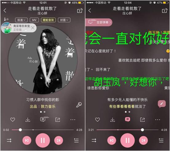 大众在收听网络歌曲时更容易引起共鸣,这也是此种类型音乐经久不衰的原因之一。这首《走着走着就散了》现已有超过5万网友在酷狗弹幕区留言,甚至有感触极深的歌迷用“霸屏弹幕”分享着自己的故事,音乐爱好者们也纷纷对这首歌进行翻唱,抒发内心的情感。