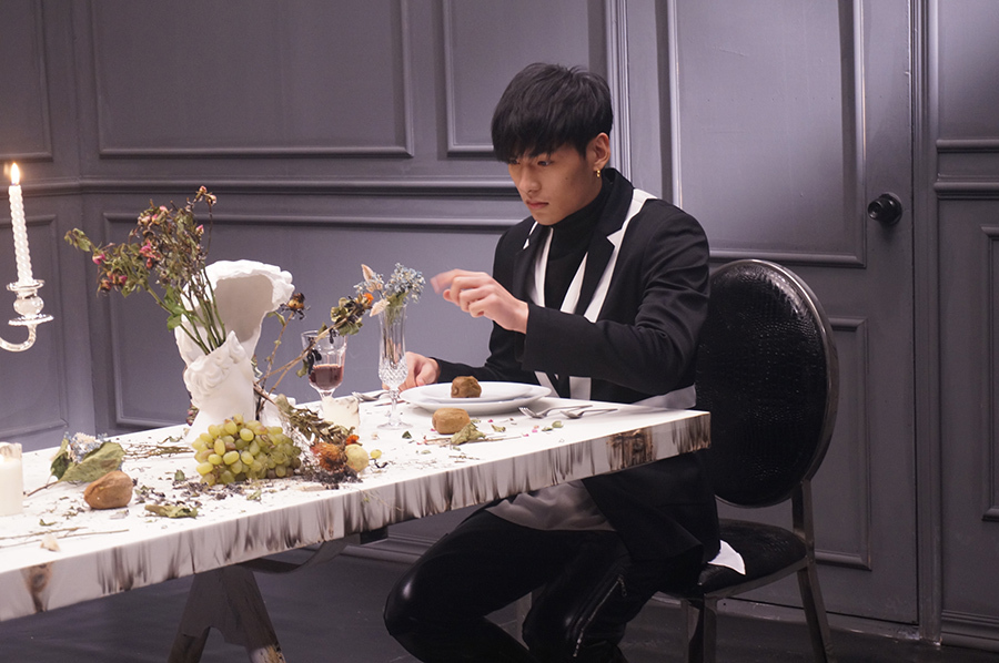 今日,吴俊余新歌《心里话》MV正式推出。MV中的画面以灰暗的色调表现出一种沉闷、压抑的气氛,两男一女相互依靠似乎暗示着一段纠葛难缠的三角恋情,腐烂的水果和干枯的花朵预示着情感的逝去,不断流淌着粉色血液在灰色的画面中格外夺人眼球。