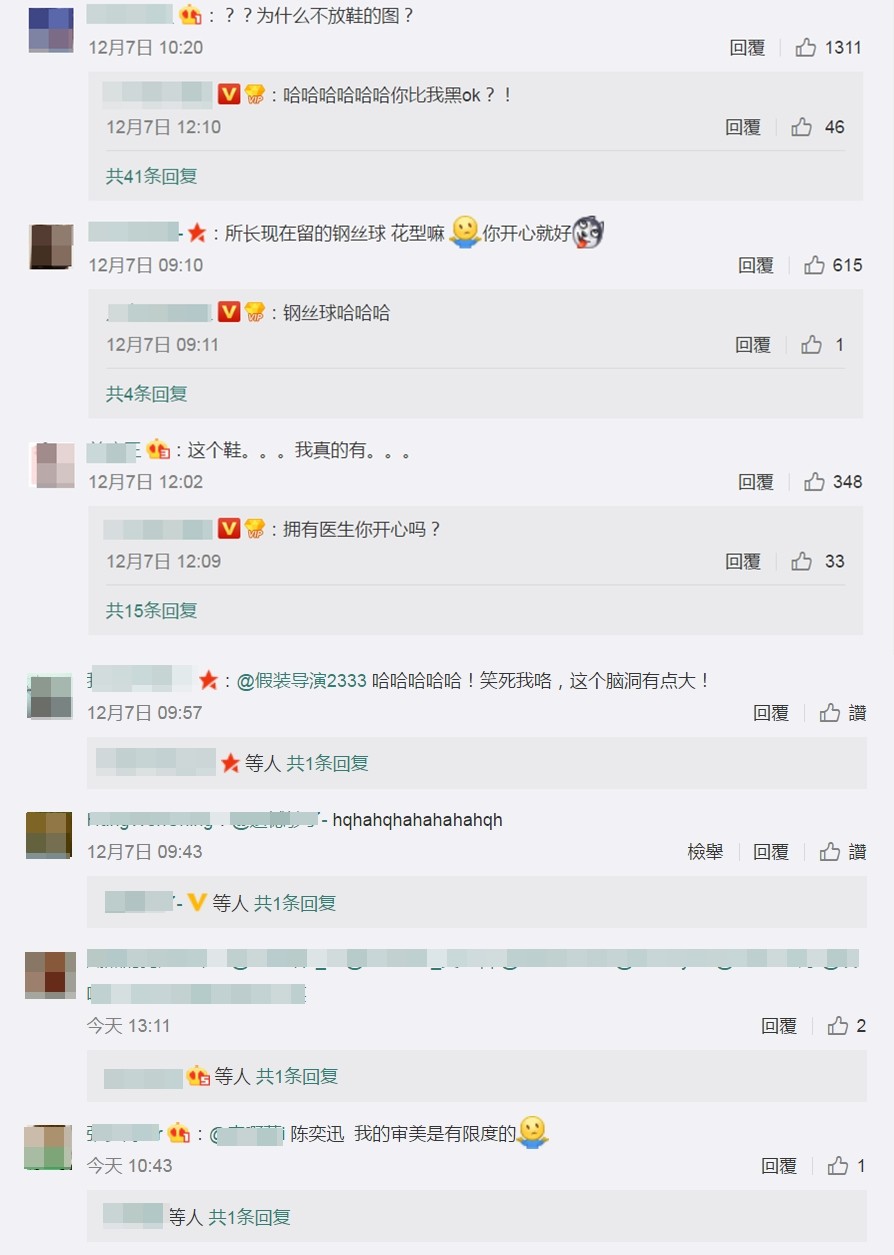 贴文一发布立即引起微博讨论,近万人按赞、分享,其中更引人疯狂的是众网友的搞笑回复,“为什么不放鞋的图”、“所长现在留的钢丝球,花型嘛”、“我所长不羁的发型岂是凡人所能模仿。”