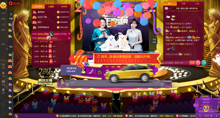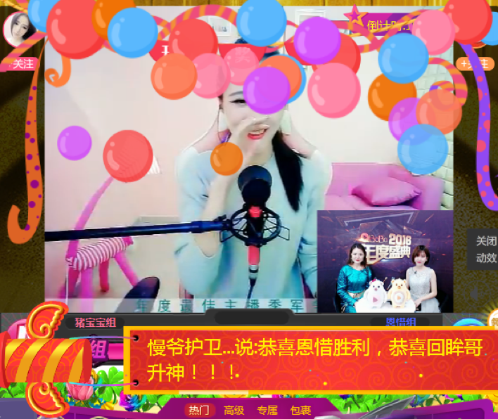 随着比赛日趋白热化,直播间的气氛也紧张到了极点。官方关闭投票大门后,直播间内红旗招展,彩旗飘飘,气球飞漫天。最终“恩惜”战胜了“猪宝宝”获得了网易BoBo年度最佳主播季军称号。据官方统计,在这短短几十分钟的时间里,双方粉丝累计给主播打赏了494万选票,折合成人民币494万!