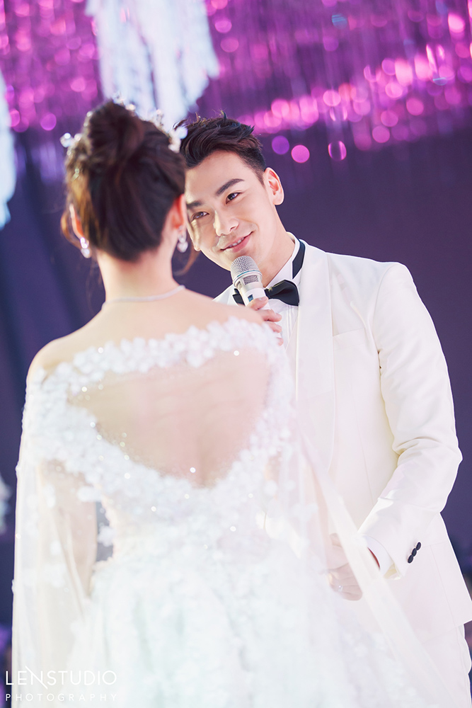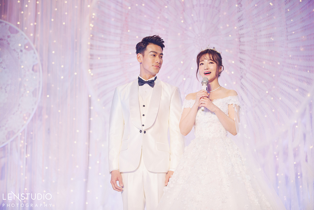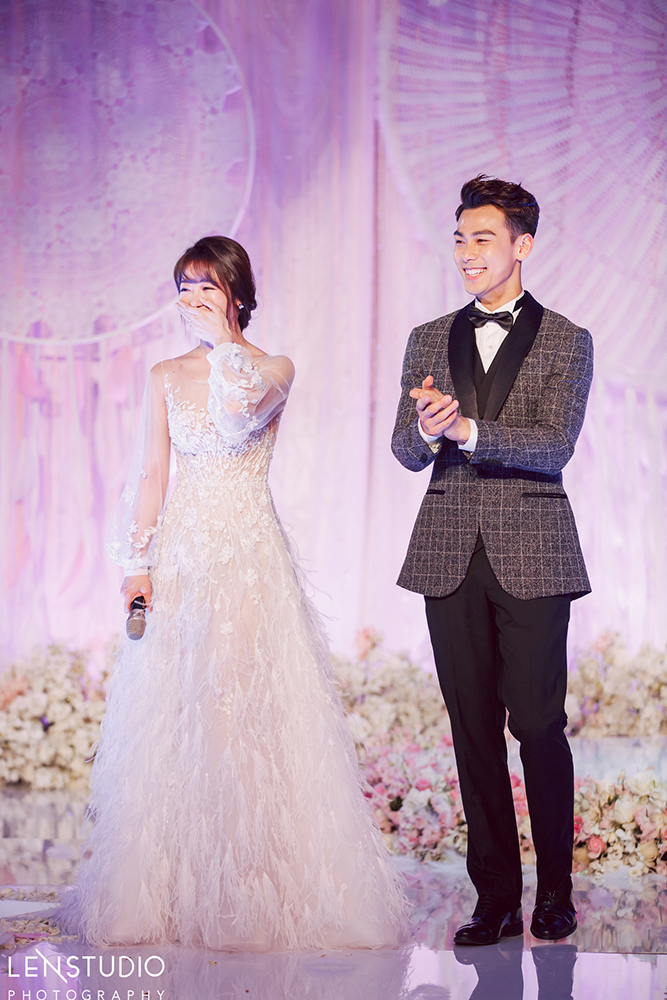 在答谢宴上,戴向宇陈紫函夫妇分享的不仅是新婚的甜蜜,更有身体力行参与公益慈善的社会意义。一直以来就非常喜欢小动物的陈紫函,有着多年捐助流浪动物的善举。当晚,中华社会救助基金会“与牠同行”公益计划发起人刘艳丽女士也来到现场,感谢陈紫函多年来对于救助流浪小动物的善心善举,并带来一份公益聘书,交到戴向宇的手上,感叹慈善的力量有了壮大。戴向宇也补充他们不仅喜欢小动物,也很喜欢小孩子,所以还宣布将当晚礼金的另一部分捐给芭莎慈善公益基金的视障孤儿项目。小两口的善心之举得到了全场亲友的热烈鼓掌。
