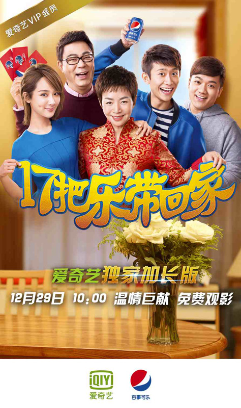 继在爱奇艺VIP会员平台成功掀起粉丝抢看热潮后,《17把乐带回家》今日全网上线,观众朋友已经可以在爱奇艺免费观看该片,独享优于其他平台的15分钟加长版内容,提前感受“国民家庭”合体跨年带来的感动。爱奇艺这次和百事合作,大胆尝试了品牌宣传片针对VIP会员首发,成功地开创了视频行业VIP会员商业化的模式,因此今日温情巨献的《17把乐带回家》只有爱奇艺会独家上线“特供”的15分钟独家加长版微电影,已经有粉丝迫不及待去支持12年国民家庭再度合体带来的惊喜了,新年了让我们一起把乐带回家吧!