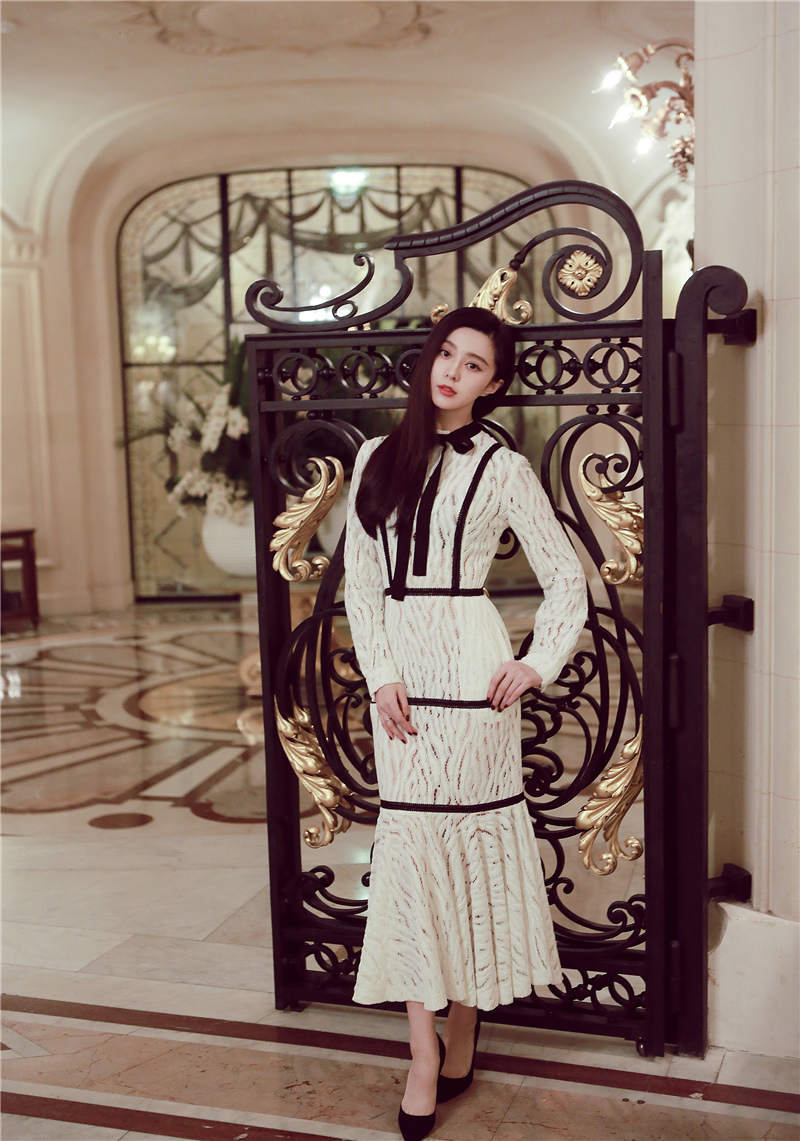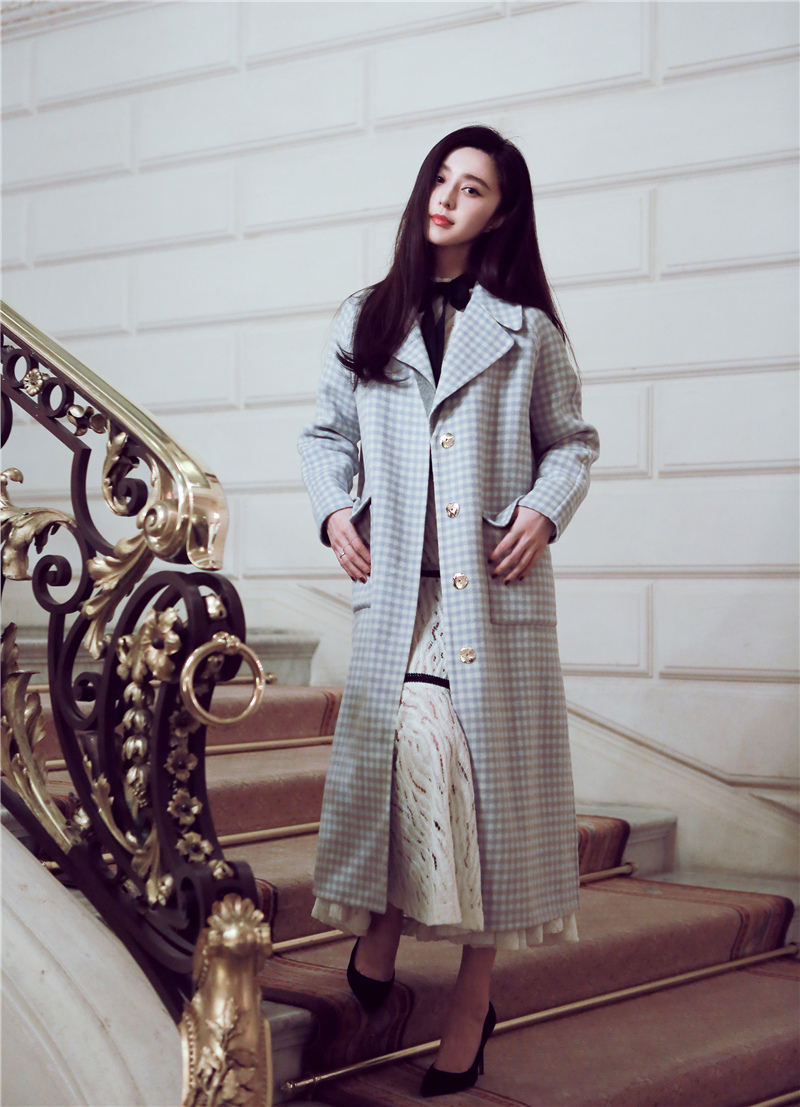 日前,范冰冰一组街拍大片曝光。在这组大片中,范冰冰身着卜柯文Chris by Christopher Bu 2016秋冬白色镂空连衣裙,搭配蓝白格双面呢大衣,肩挎Stella特别订制款挎包,复古的优雅之中,颇具冬日独有的恬静和暖意。