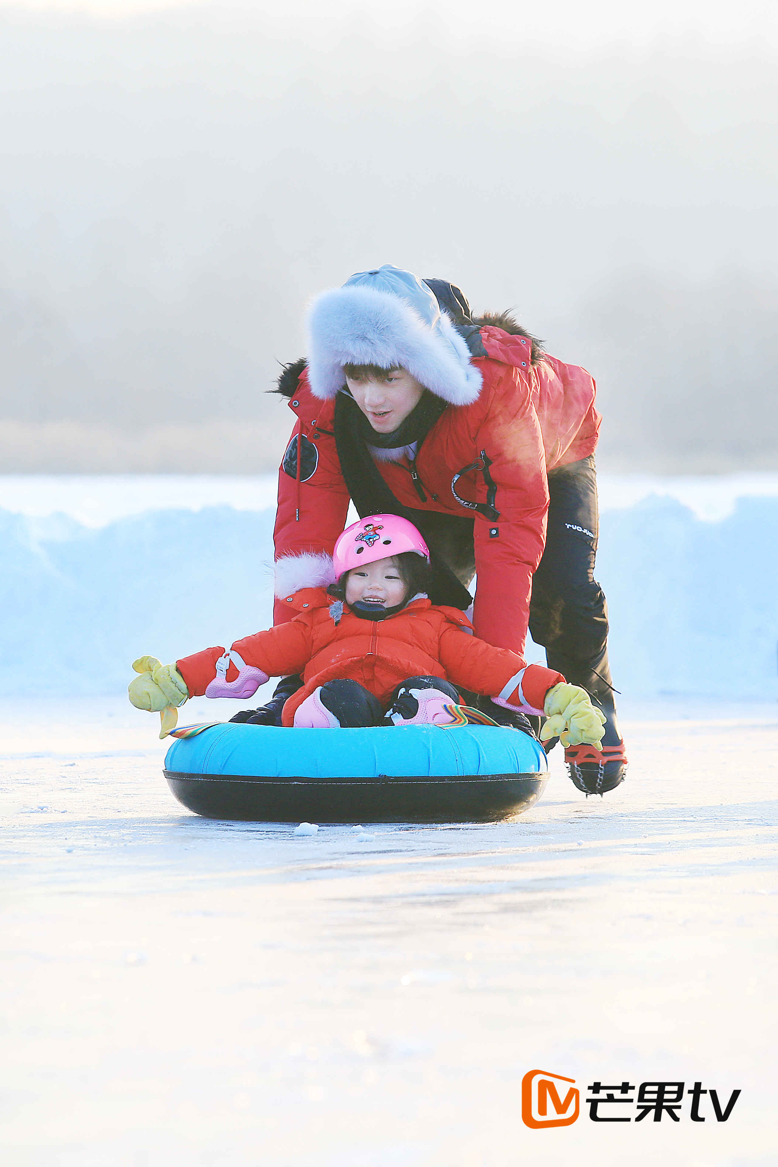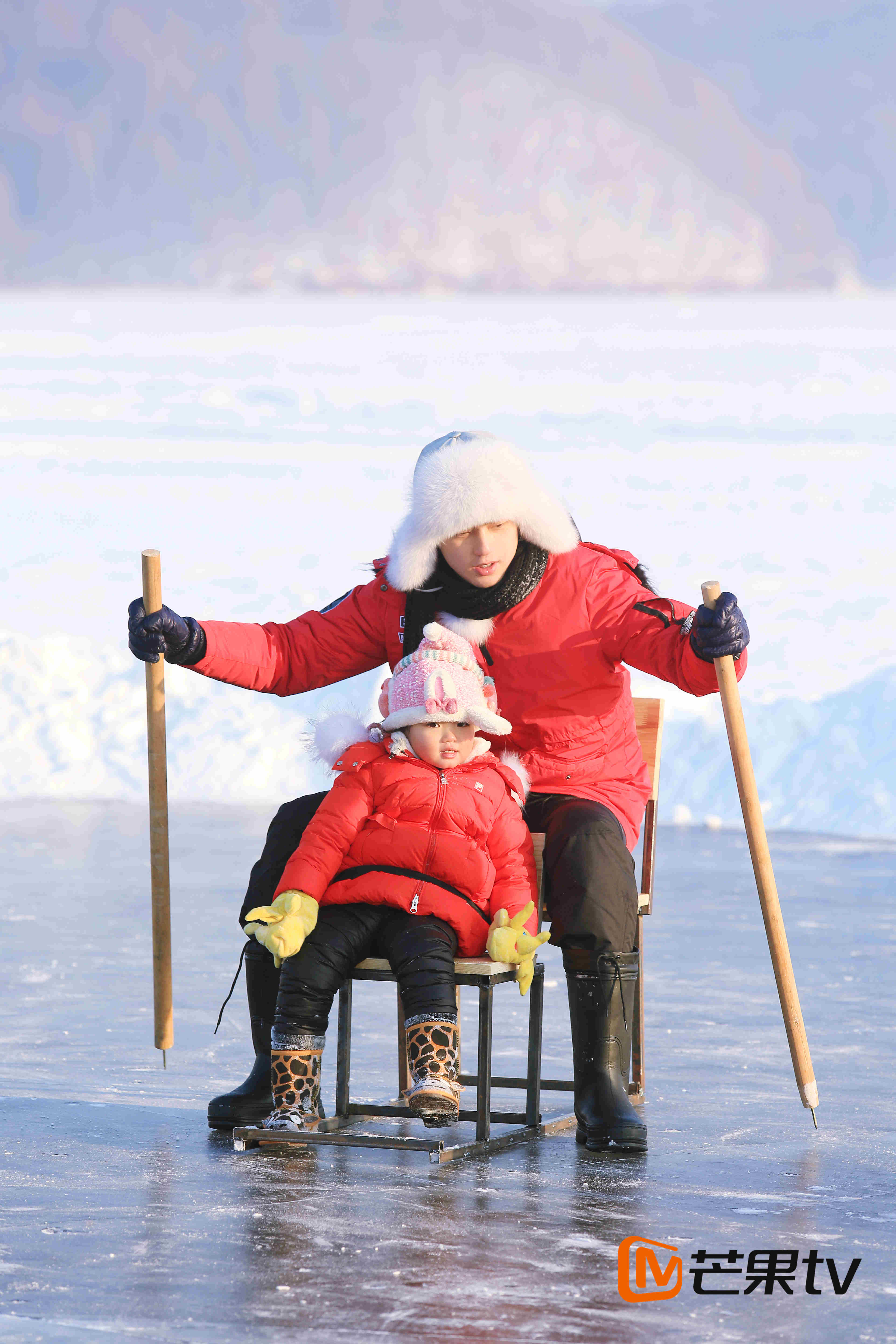 萌娃奶爸将在桃源湖上完成滑冰项目,六组家庭将根据抽冰签的形式,分成两组,分别进行雪地滑冰大作战及人体保龄球。在结冰数尺的湖面上,阿拉蕾的行动略为艰难,集合前,所有萌娃都一溜烟的冲向村长,唯有阿拉蕾站在原地一动不动,无助的向“葱长”求救。看到此景,张伦硕逗趣的称阿拉蕾为“冰封公主”。