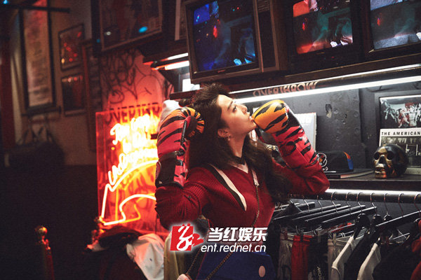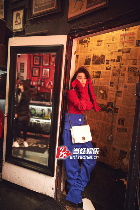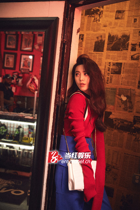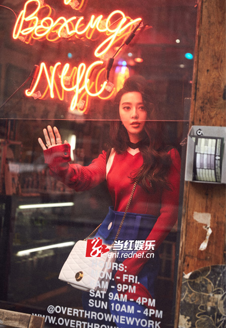范冰冰2017年首组街拍曝光,身着红色针织上衣和高腰蓝色长裤,化身“超级马里奥”,搭配白色链条包点缀装扮,更是萌帅十足的打起拳击,俏皮劲儿尽显。
