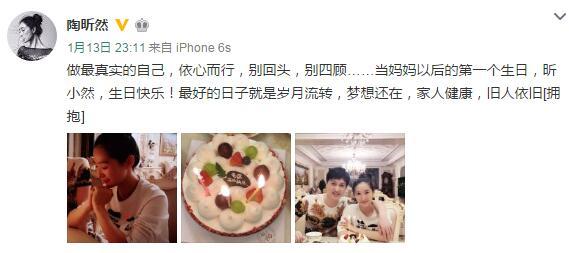 12月底的的时候,陶昕然曾晒出为老公庆生的照片,当时二人的合照也是相似的背景,如今轮到陶昕然过生日,不少网友乍看还以为是照片发重复了,不仅感叹着夫妇二人连庆生都要一样的方式。结婚生女,事业有成,陶昕然感慨道:“做最真实的自己,依心而行,别回头,别四顾……当妈妈以后的第一个生日,昕小然,生日快乐!最好的日子就是岁月流转,梦想还在,家人健康,旧人依旧!”