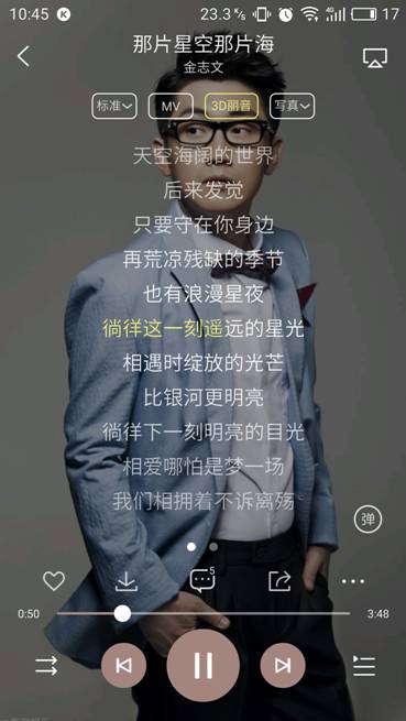 《那片星空那片海》由唱作才子金志文深情献唱,“徜徉这一刻遥远的星光,相遇时绽放的光芒,比银河更明亮”,歌词配合悠扬的弦律,如同星海斑斓的画卷慢慢展开。在金志文极具穿透力的歌声下,唱出了深蓝夫妇爱到深处的荡气回肠!