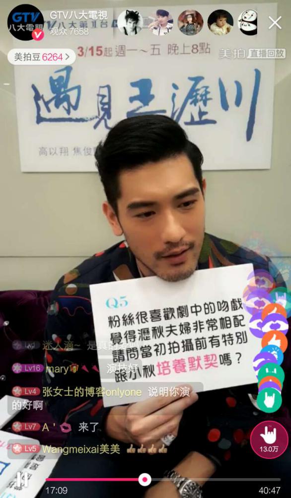 让电视剧中的高人气角色跳出荧幕和观众面对面互动,正在美拍领导的这场主演带你美拍直播来追剧的热潮中,成为影视剧宣发的一种新方式。